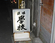 「バー学校」という名前は、知る人ぞ知る、草野心平が、1960年、60年安保の年に、「安保反対、本日開店」という五色刷りのビラを配って、新宿御苑前に開いた店の名前だそうであるが、それを看板に、関係者の許可を得て、このゴールデン街でこの店を、7,8年前から、営業しているのがれいこママである。