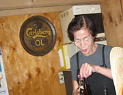 シンプルな無地のグレーのTシャツに、黒の、若々しいエプロンを、細身な体にまきつけて、優しく客を迎えてくれる笑顔は、とてもチャーミング。「うちは、酔わない酒は売りません」、「酒なくて、何の人生」と語り、馴染みの客とは、一緒に酔いしれてもくれそうなママである。